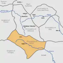 Map of the Principality of Halych in the 13th century, which formed the nucleus of what later became Galicia