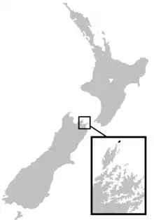Leiopelma hamiltoni are typically found on the Stephens and Maud Islands, located in the Marlborough Sounds region of New Zealand. Maud island is very small with steep hills, only spanning about 760 acres. The estimated population size of Leiopelma hamiltoni on Maud Island is around 19,000, with the minimum population estimate being around 6,500. The population is much smaller on Stephans Island, with a population estimate of about 200 to 300 individuals. They reside in a small patch at the peak of Stephan's Island which is known as “frog bank”.[13] However, fossils show that the species may have previously had a larger range, with fossils being found scattered all over New Zealand. Remains have been found at Waitoma, Hawkes Bay, and Wairarapa, which are all located on the North Island of New Zealand.[14] Much of the island has been modified due to farming, forcing all the frogs to live in the same section of rainforest that remains.[13]