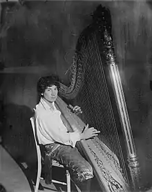 The modern Celtic harp began to appear in the early 19th century in Ireland, contemporary with the dying-out of earlier forms of Gaelic harp. Dublin pedal harp maker John Egan developed a new type of harp which had gut strings and semitone mechanisms like an orchestral pedal harp; it was small and curved like the historical cláirseach or Irish harp, but its strings were of gut and the soundbox was much lighter.[54] In the 1890s a similar new harp was also developed in Scotland as part of a Gaelic cultural revival.[55] In the mid-20th century Jord Cochevelou developed a variant of the modern Celtic harp which he referred to as the "Breton Celtic harp"; his son Alan Stivell was to become the most influential Breton harper, and a strong influence in the broader world of the Celtic harp.