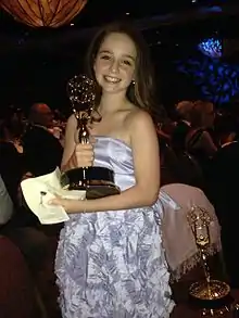 In 2014, Negrin won a Daytime Emmy Award for Outstanding Performer in an Animated Program for her work on Peg + Cat.[4] She was the youngest Daytime Emmy nominee that year.[5]