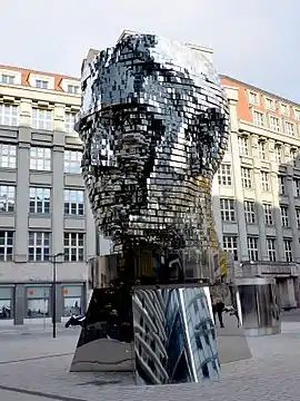 The Head of Franz Kafka (Czech: Hlava Franze Kafky), also known as the Statue of Kafka,[1] is an outdoor sculpture by David Černý depicting Bohemian German-language writer Franz Kafka, installed outside the Quadrio shopping centre in Prague, Czech Republic.[2][3][4] The kinetic sculpture is 11 metres tall and made of 42 rotating panels.[5] Each layer is mechanized and rotates individually.[6]