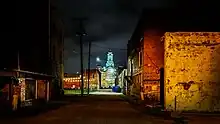 Hill County Courthouse in Hillsboro, night view through the side alley, 2023