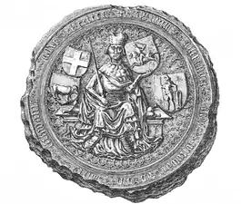 Vytautas had been frustrated by Jogaila's Polish arrangements and rejected the prospect of Lithuania's subordination to Poland.[64] Under Vytautas, a considerable centralization of the state took place, and the Catholicized Lithuanian nobility became increasingly prominent in state politics.[65] The centralization efforts began in 1393–1395, when Vytautas appropriated their provinces from several powerful regional dukes in Ruthenia.[66] Several invasions of Lithuania by the Teutonic Knights occurred between 1392 and 1394, but they were repelled with the help of Polish forces. Afterwards, the Knights abandoned their goal of conquest of Lithuania proper and concentrated on subjugating and keeping Samogitia. In 1395, Wenceslaus IV of Bohemia, the Order's formal superior, prohibited the Knights from raiding Lithuania.[67]