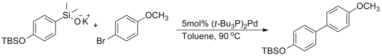 - 1 2 Denmark, S. E.; Smith, R. C.; Chang, W.-T. T.; Muhuhi, J. M. (2009), "Cross-Coupling Reactions of Aromatic and Heteroaromatic Silanolates with Aromatic and Heteroaromatic Halides", Journal of the American Chemical Society, 131 (8): 3104–3118, doi:10.1021/ja8091449, PMC 2765516, PMID 19199785