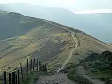 Hollins Cross is the lowest point on the ridge and is therefore a popular route taken by walkers wishing either to cross from one side to the other, or to start a walk along the ridge. It was also the traditional route from Castleton to Edale. Coffins from Edale were taken over Hollins Cross to Hope church until a church was constructed in Edale, leading to the nickname of the "coffin road" for this route.[1]