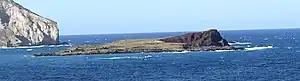 The Mokapu peninsula was formed by Honolulu Volcanics and includes the three volcanic vents of Puʻu Hawaiʻiloa, Pyramid Rock and Ulapaʻu Head; additional vents form islets off the peninsula,[58] such as Moku Manu[59] and Mōkōlea Rock. Puʻu Hawaiʻiloa is a cinder cone in the middle of the peninsula,[60] Pyramid Rock at the northwestern tip[61] is deeply eroded and probably the oldest vent in the peninsula, and Ulapaʻu Head is a crater that was breached by the sea[60] and of which only a crescent-like western part remains.[62]