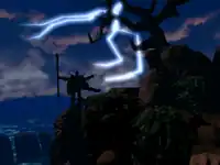 The change of setting established a formal connection between the two series, and successive Might and Magic games continued the Heroes storyline, though with overt connections to the original series such as many references to the Ancients and the presence of a town named New Sorpigal, in reference to the first game's starting town. These were built upon in Might and Magic VII and VIII, which featured several characters from the first five games. The story is set ten years after Heroes of Might and Magic II, and occurs in tandem with the events of Heroes of Might and Magic III: The Restoration of Erathia.[3] The game was first announced with a press release at E3 of April 1998, described by series creator Jon Van Caneghem, who led development, as "the best Might and Magic that I have ever made" and "by far the largest and most ambitious game in the history of role playing games" with more than a thousand miles of virtual terrain.[10] An architect was reportedly involved with designing the gameworld's structures and dungeons, and two graphic engines named Horizon and Labyrinth were used in the creation of the game's environments.[10][12] In Might and Magic VI larger objects like buildings, dungeons and the landscape are in 3D. Smaller objects like trees, humans and creatures are 2-dimensional sprites. The sprites were pre-rendered 3D images in 3DS Max and Character Studio.[13][14][15] It was the first in the series to feature full motion video cinematics. The game's soundtrack was composed by Steve Baca, Rob King, Paul Romero and Jennifer Wang – Baca, King and Romero had previously composed music for Heroes of Might and Magic.[16]