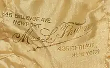 In the 1890s, Thurn benefited from the increasing preference of wealthy Americans for Parisian fashions.[12] The firm continued to grow and by 1889 it employed a large staff of trimmers, drapers, finishers, and other specialized workers.[13] Its workforce in 1900 was 175 employees of all types.[14] One source says that Thurn attracted society clients during this period, including members of the Rockefeller and Mellon families.[15]