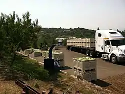 Part of harvest activities at the LDS Medford Pear Orchard, USA.