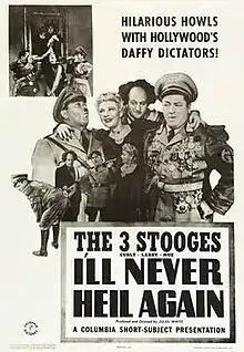 I'll Never Heil Again is a 1941 short subject directed by Jules White starring American slapstick comedy team The Three Stooges (Moe Howard, Larry Fine and Curly Howard). It is the 56th entry in the series released by Columbia Pictures starring the comedians, who released 190 shorts for the studio between 1934 and 1959.
