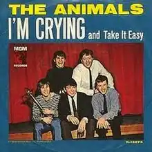 "I'm Crying" is a song originally performed by the English rock/R&B band The Animals. Written by the group's lead vocalist Eric Burdon and organist Alan Price, it was their first original composition released as a single. The song was released in September 1964[1] and became their second transatlantic hit after "The House of the Rising Sun", which was released earlier in the year (see 1964 in music). The single became a Top 20 hit in Canada, the United Kingdom, and the United States.