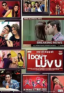 I Don't Luv U is a 2013 Indian Hindi-language romantic drama film, starring Ruslaan Mumtaz and Chetna Pande in the lead roles. The film is produced by Dr. Anil Kumar Sharma and written and directed by Amit Kasaria under the banner of Amrapali Media Vision. The film was released on 17 May 2013 in India.[1]