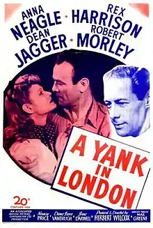I Live in Grosvenor Square is a British comedy-drama romance war film directed and produced by Herbert Wilcox. It was the first of Wilcox's "London films" collaboration with his wife, actress Anna Neagle. Her co-stars were Dean Jagger and Rex Harrison. The plot is set in a context of US-British wartime co-operation, and displays icons of popular music with the purpose of harmonising relationships on both sides of the Atlantic.[2] An edited version was distributed in the United State