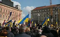 At the beginning of Russian invasion, protests against the invasion and in support of Ukraine were held in several Croatian cities. On 5 March 2022, a protest in support of Ukraine was held in Zagreb. According to Croatian daily Jutarnji list, the protest was attended by several thousand of Zagreb citizens. Notable people attending the protest included Croatian education minister Radovan Fuchs, president of the Croatian Helsinki Committee Ivan Zvonimir Čičak, European parliamentarian Tonino Picula, and French ambassador in Croatia Gaël Veyssière.[40] Similar protest in support of Ukraine was also organised in second largest Croatian town Split.[41] Town mayor Ivica Puljak and county prefect Blaženko Boban also participated in the protest.[42] More protest in support of Ukraine were held in Vukovar and Slavonski Brod.[41] In Slavonski Brod some young woman attacked the protesters by yelling: "What does [Slavonski] Brod have from Ukraine!?", before she was taken away by the police.[43] Another protest in support of Ukraine was also held in front of Faculty of Humanities and Social Sciences in Zagreb on 5 April 2022.[44]