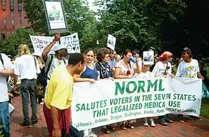 Initiative 59 was a 1998 ballot initiative in Washington, D.C., that sought to legalize medical cannabis. The short title of the initiative was "Legalization of Marijuana for Medical Treatment Initiative of 1998".[1] Though the initiative passed with 69% of the vote in November 1998, its implementation was delayed by Congress's passage of the Barr Amendment, which prohibited DC from using its funds in support of the program. This Amendment delayed the start of the medical marijuana program until it was effectively overturned in 2009, with the first DC customer legally purchasing medical cannabis at a dispensary in the District in 2013.[2]