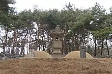 On April 11, 1623, Gwanghaegun was deposed in a coup by the Westerners faction. The coup directed by Kim Yu took place at night, Gwanghaegun fled but was captured later.[4] He was confined first on Ganghwa Island and then on Jeju Island, where he died in 1641.[5] He does not have a royal mausoleum like the other Joseon rulers. His and Lady Ryu's remains were buried at a comparatively humble site in Namyangju in Gyeonggi Province. The Westerners faction installed Neungyanggun as the sixteenth king Injo who promulgated pro-Ming and anti-Manchu policies, which resulted in two subsequent Manchu invasions.