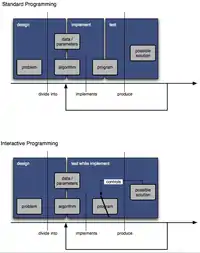 It thus forms a specific instance of interactive computation as an extreme opposite to batch processing, where neither writing the program nor its use happens in an interactive way. The principle of rapid feedback in extreme programming is radicalized and becomes more explicit.