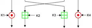 ![]() An encryption round of IDEA | |