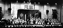 The stage with the hosts of the programme (centre), the Angelini orchestra (left) and the Trovajoli orchestra (right)