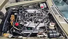 Although it had been the manufacturer's intention from launch that the XJ would use the 12-cylinder engine its installation was nonetheless a tight fit, and providing adequate cooling had been a challenge for Jaguar's engineers.[6] Bonnet louvres such as those fitted on the 12-cylinder E-Type were rejected and instead the XJ12 featured a complex "cross-flow" radiator divided into two separated horizontal sections supported with coolant feeder tanks at each end. The engine fan was geared to rotate at 1¼ times the speed of the engine, subject to a limiter which cut in at a fan speed of 1,700 rpm.[6] The fuel system incorporated a relief valve that returned fuel to the tank when pressure in the lines to the carburettors exceeded 1.5 psi, to reduce the risk of vapour locks occurring at the high operating temperatures, while the car's battery had its own thermostatically-controlled cooling fan.[6]