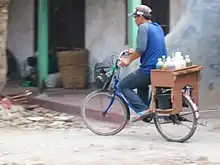 Sukoharjo in Central Java in particular is believed to be one of the center of jamu tradition.[15] Many of the Mbok Jamu jamu sellers ladies are hailed from this town. The traditional jamu herbal traders in Sukoharjo has established the statue of jamu seller as Sukoharjo's identity in Bulakrejo. Commonly called "jamu herbal seller statue" it depicts a farmer and a jamu gendong herbalist carrying her wares. Sukoharjo regions, particularly sub-district Nguter,[16] is known as the place of origin of Mbok Jamu gendong herbalist in many big cities, such as Jakarta, Bandung, Bogor, and Surabaya.[17]