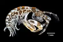 Jassa falcata, commonly known as scud, is a tube-dwelling amphipod.