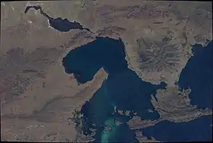 ![]() Jilarata near Wiñaymarka Lake as seen from the ISS (upper center, left; north is to the lower right part of this image) | |