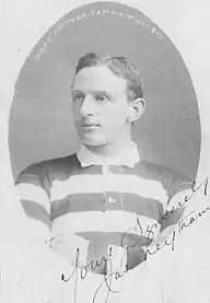 James Leytham (birth registered fourth ¼ 1879[4] – 20 August 1916[5]), also known by the nickname of "Gentleman Jim", was an English professional rugby league footballer who played in the 1890s, 1900s and 1910s. He played at representative level for Great Britain, England and Lancashire, and at club level for Lancaster and Wigan (captain), as a wing, i.e. number 2 (number 14 in a 15-player team) or 5 (number 11 in a 15-player team).[1]