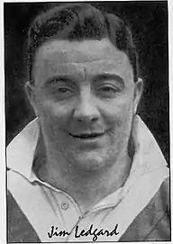 James "Jim"/"Jimmy" Ledgard (9 June 1922 – 26 January 2007) was an English rugby union and World Cup winning professional rugby league footballer who played in the 1940s, 1950s and 1960s, and coached rugby league in the 1960s. He played club level rugby union (RU) for Sandal RUFC, and representative level rugby league (RL) for Great Britain, England and Yorkshire, and at club level for Dewsbury (two spells), and Leigh, as a goal-kicking fullback, i.e. number 1,[2] and coached at club level for Bradford Northern.[5]