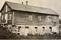 In 1848, bankrupt and having lost the family's house, Brown heard of Gerrit Smith's Adirondack land grants to poor black men, in so remote a location that Brown later called it Timbuctoo, and decided to move his family there to establish a farm where he could provide guidance and assistance to the blacks who were attempting to establish farms in the area.[96] He bought from Smith land in the town of North Elba, New York (near Lake Placid), for $1 an acre ($2/ha).[97] It has a magnificent view[14] and has been called "the highest arable spot of land in the State."[98] After living with his family about two years in a small rented house, and returning for several years to Ohio, he had the current house  now a monument preserved by New York State  built for his family, viewing it as a place of refuge for them while he was away. According to youngest son Salmon, "frugality was observed from a moral standpoint, but one and all we were a well-fed, well-clad lot."[99]