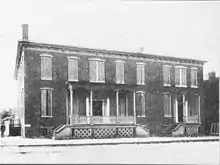 Back in Hudson, Brown taught himself surveying from a book.[48][lower-alpha 3] He worked briefly at his father's tannery before opening a successful tannery outside of town with his adopted brother Levi Blakeslee.[41] The two kept bachelor's quarters, and Brown was a good cook.[41] He had his bread baked by a widow, Mrs. Amos Lusk. As the tanning business had grown to include journeymen and apprentices, Brown persuaded her to take charge of his housekeeping. She and her daughter Dianthe moved into his log cabin. Brown married Dianthe in 1820.[49] There is no known picture of her,[50] but he described Dianthe as "a remarkably plain, but neat, industrious and economical girl, of excellent character, earnest piety, and practical common sense".[51] Their first child, John Jr., was born 13 months later. During 12 years of married life Dianthe gave birth to seven children, among them Owen, and died from complications of childbirth in 1832.[52]