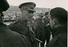 Crocker continued training his division for the next several months. However, in mid-October 1941 Crocker, who had by now commanded his division for just over a year, relinquished command of the division to Major-General Herbert Lumsden upon being selected to command the 2nd Armoured Group in Home Forces. The Armoured Groups were the brainchild of Major-General Giffard Martel, the Commander Royal Armoured Corps (CRAC), and were set up following his advice with the intention of commanding all the armoured formations in the United Kingdom.[21] His rank of major-general was made temporary on 22 October 1941.[15] The idea was short-lived and he was not to remain there long, as on 16 March 1942 Crocker was promoted to the acting rank of lieutenant-general[26] and was given command of XI Corps, taking over from Lieutenant-General Noel Irwin, who was being posted to command IV Corps in the Mediterranean theatre. Aged just forty-six, this made Crocker one of the youngest corps commanders in the British Army. It is quite probable that Alan Brooke, who still thought highly of Crocker and was now Chief of the Imperial General Staff (CIGS), secured for him his new appointment. Crocker's new command, which had Harold Morgan's 45th, Evelyn Barker's 54th (East Anglian) and Eric Miles's 56th (London) Infantry Divisions, along with the 21st Army Tank Brigade, under command, was based in East Anglia, where it had responsibility for its defence in the event of an invasion, and was serving under Eastern Command.[21]