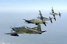 During 2002, KAI revealed that they were working on the production of an upgraded and armed version of the KT-1 basic trainer.[2] This variant, designated KO-1, was intended to be used in the forward air control and counter-insurgency (COIN) roles. Development was conducted in cooperation with the Agency for Defence Development (ADD) and had been undertaken in response to an existing RKAF requirement for 20-40 aircraft.[2] According to a KAI representative, the KO-1 is ideally suited for drug interdiction operations and that the company was pitching the variant towards countries in Latin America.[3]