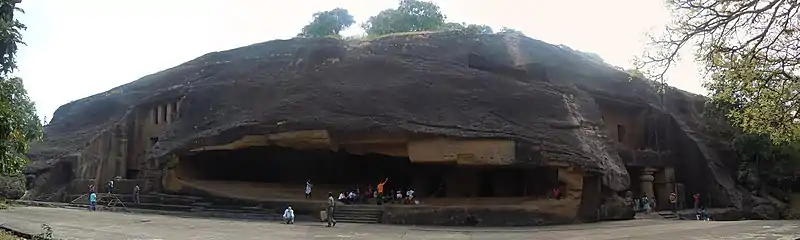 The Kanheri Caves (Kānherī-guhā [kaːnʱeɾiː ɡuɦaː]) are a group of caves and rock-cut monuments cut into a massive basalt outcrop in the forests of the Sanjay Gandhi National Park, on the former island of Salsette in the western outskirts of Mumbai, India. They contain Buddhist sculptures and relief carvings, paintings and inscriptions, dating from the 1st century CE[1] to the 10th century CE. Kanheri comes from the Sanskrit Krishnagiri, which means "black mountain".[2]