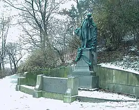 Mácha was buried in Litoměřice in a pauper's grave. Recognition came after his death: in 1939, his remains were exhumed, and they were given a formal state burial at the Vyšehrad cemetery in Prague. A statue was erected in his honor in Petřín Park, Prague.[2] In 1937 a biographical film, Karel Hynek Mácha, was made by Zet Molas (a pen name of Zdena Smolová). Lake Mácha (Czech: Máchovo jezero) was named after him in 1961.