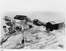 The jetty was built in 1920 by the South Australian Harbors Board on a lease back agreement. It was the first reinforced concrete piled jetty in South Australia, measuring 79 metres (259 feet) long with a depth of 3.3 metres (11 feet) at low water. It was widened to 1927, and altered again in 1953. In 1965 a T section was added to improved loading facilities.[4] It now measures 150 metres (490 feet) long with a depth of 6.5 metres (21 feet).[5]