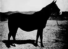Koheilan I, a grey stallion born at Bábolna National Stud in Hungary in 1922, was exported to Janów Podlaski Stud in Poland, where he became the head of the Arabian racehorse line. Some of its descendants have been exported to the United States.[32] The Bábolna National Stud favors the Koheilan trend among its Arabian half-breeds.[33] The Hungarian Shagya breed is thus partly descended from the Koheilan IV stallion.[34] The line was also exported to Russia,[35] where it influenced the Tersk breed:[36] Koheilan horses form one of the three Arabian lines most exported to this country.[37] The line was also imported into the Shushi region, where local traditions from the 1920s still recall it,[38] and more widely into the Republic of Artsakh, where it has influenced the local breed.[39]