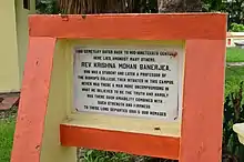 Reverend Krishna Mohan Banerjee died on 11 May 1885 in Kolkata, and was buried at Shibpur with his wife. The graveyard is currently located inside the campus of IIEST.[3]