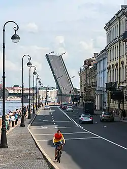The Kutuzov Embankment or Kutuzov Quay (Russian: Набережная Кутузова, Naberezhnaya Kutuzova) is a street along the Neva River in Central Saint Petersburg. The street begins at the Fontanka, where the Palace Embankment becomes the Kutuzov Embankment, and the street ends at the Liteyny Prospekt and Liteyny Bridge. It was known as the French Embankment in the beginning of the 19th century, as the French Embassy used to be located on the street.[1] The street was later named after Prince M. I. Kutuzov, who began his successful campaign against Napoleon Bonaparte during the French Invasion of Russia on the embankment.[1]