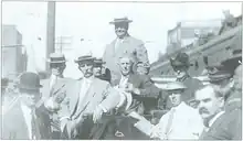 Active in state politics since 1905, L. R. Kershaw was a delegate to Oklahoma State and Muskogee County conventions. In 1906 he was nominated to the Oklahoma Constitutional Convention for the 74th District of Indian Territory, which became the new state of Oklahoma in 1907. In 1910, a young L. R. Kershaw played host to James S. Sherman's visit to Oklahoma City, and was in the driver's seat during the tour of downtown Oklahoma City. Usually sporting a weathered cowboy (stockman's) hat, Kershaw (shown in the far right driver's seat, above) broke from tradition and wore a straw boater along with the rest of the welcoming party when they hosted the Vice President of the United States. The protective detail from the Secret Service and the Oklahoma City Police Department are wearing derby hats, police caps or dark cowboy hats. A year later, Sherman became the first sitting Vice President to fly in an airplane. Sherman was also the first Vice President to throw out the first ceremonial pitch at a professional baseball game, the first incumbent Vice President to be renominated by a National Convention, and the only Vice President whose marble bust in the U. S. Capitol is wearing eyeglasses.