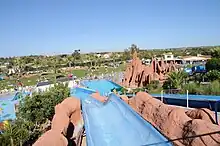 Lagoa (Portuguese pronunciation: [lɐˈɣoɐ] ) is a city and municipality in the district of Faro, in the Portuguese region of Algarve.[1] The population of the municipality in 2011 was 22,975,[2] in an area of 88.25 km².[3] Its urban population, in the city of Lagoa proper, is 6,100 inhabitants. An important travel destination, its coast has won numerous accolades. Marinha Beach was considered by the Michelin Guide as one of the 10 most beautiful beaches in Europe and as one of the 100 most beautiful beaches in the world.[4]