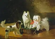 The Russian Lapdog and the Mexican Lapdog were not breeds in the modern sense, but were types of small dogs from Russia and Mexico respectively. The immature Mexican Lapdog could be as small as a golden hamster. During the 19th century it was fashionable to mount immature specimens to look like adults, giving a false impression of adult size: