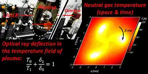 - ↑ Schäfer, J.; Foest, R.; Reuter, S.; Kewitz, T.; Šperka, J.; Weltmann, K.-D. (2012). "Laser schlieren deflectometry for temperature analysis of filamentary non-thermal atmospheric pressure plasma". Review of Scientific Instruments. 83 (10): 103506–8. Bibcode:2012RScI...83j3506S. doi:10.1063/1.4761924. PMC 3494719. PMID 23126765.