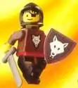 The 1984 Castle sets predominantly featured the motif of a black and white bird against a black and white background, split down the middle. The minifigures that were associated with this symbol almost invariably had black pants, black helmets, and blue torsos with black sleeves, often with the bird emblem on their chests and shields (with a blue or gold border). Some fans in the United States have labeled this faction as "Black Falcons", and Australian fans have called them "Eagle Crest", though at the time each term appears only once in any official Lego literature – both in regional names for set 6074. A 1989 US catalogue includes an ambiguous reference to the "Guardians of the Gray Castles". However, the faction was never labeled as anything other than "Castle", nor was it ever officially recognized as a theme.[2] Although the term Black Falcons wasn't explicitly and internationally used to market the faction in its original incarnation, Lego later picked up the term in its own marketing to refer to the earlier theme.[3][4]