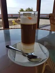 Typical coffee drink of the Spanish Canary Islands which is a mixture of espresso, milk and Licor 43