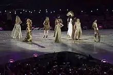 During the 2012 Summer Olympics closing ceremony, Donaldson was one of the British models wearing bespoke fashions created by British designers specifically for the event. The other models were Naomi Campbell, Kate Moss, David Gandy, Karen Elson, Jourdan Dunn, Georgia May Jagger and Stella Tennant.[12] She wore a gold ball gown by Vivienne Westwood.[13]