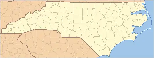 - ↑ The following sites are listed in multiple counties, none of them have articles nor illustrations: E. M. Backus Lodge (Jackson and Transylvania), Beatty-Corbett House (Pender and Sampson), Bellamy's Mill (Halifax and Nash), Cape Fear Civil War Shipwreck Discontiguous District (Brunswick, New Hanover and Pender), Cheoah Hydroelectric Development (Graham and Swain), Green Park Historic District (Caldwell and Watauga), Linville Falls Tavern (Avery, Burke and McDowell), Long Valley Farm (Cumberland and Harnett), Rocky Mount Central City Historic District (Edgecombe and Nash), Upper Town Creek Rural Historic District (Edgecombe and Wilson), Mount Carmel Presbyterian Church and Cemetery (Montgomery and Richmond), Dillard B. and Georgia Sewell House (Henderson and Transylvania), Wyse Fork Battlefield (Jones and Lenoir).