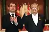 ![]() Aitmatov (left) at the 2007 Cologne Literature Festival with Publishing Director Lucien Leitess (center) and Mongolian writer Galsan Tschinag (right) |