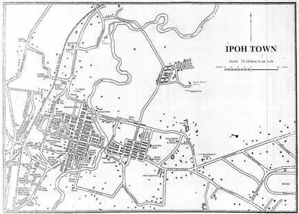 The town is located on the Kinta River which was the main means of communication to the area until 1895 when the Kinta Valley Railway opened. It grew up at the point on the river at which it ceased to be navigable and the landing stage was by an old upas tree from which the town took its name. During the 1890s the town expanded rapidly from a market village to a booming mining town as large number of Chinese coolies came to the area to work the tin mines of the Kinta valley. The only two roads initially in the area were the cart tracks linking the mines to the landing stages. A wooden bridge was built across the Kinta river on the road to Gopeng which became Hugh Low Street.[1]