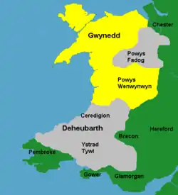 - ↑ John Edward Lloyd (2004). A history of Wales : from the Norman invasion to the Edwardian conquest (Reprint ed.). Barnes & Noble. pp. 297, 362. ISBN 0760752419.